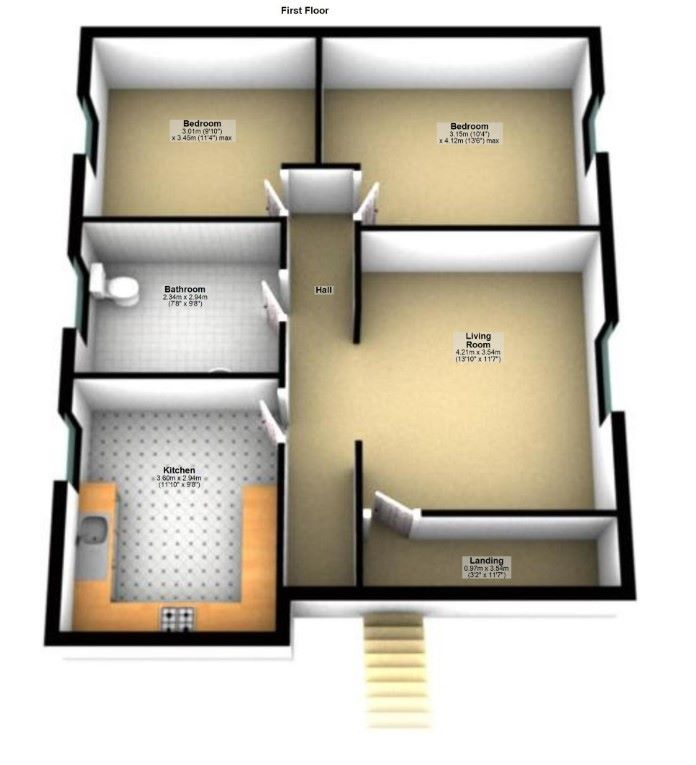 First Floor On the first floor is a large lounge, large kitchen, large bathroom and 2 more double bedrooms.