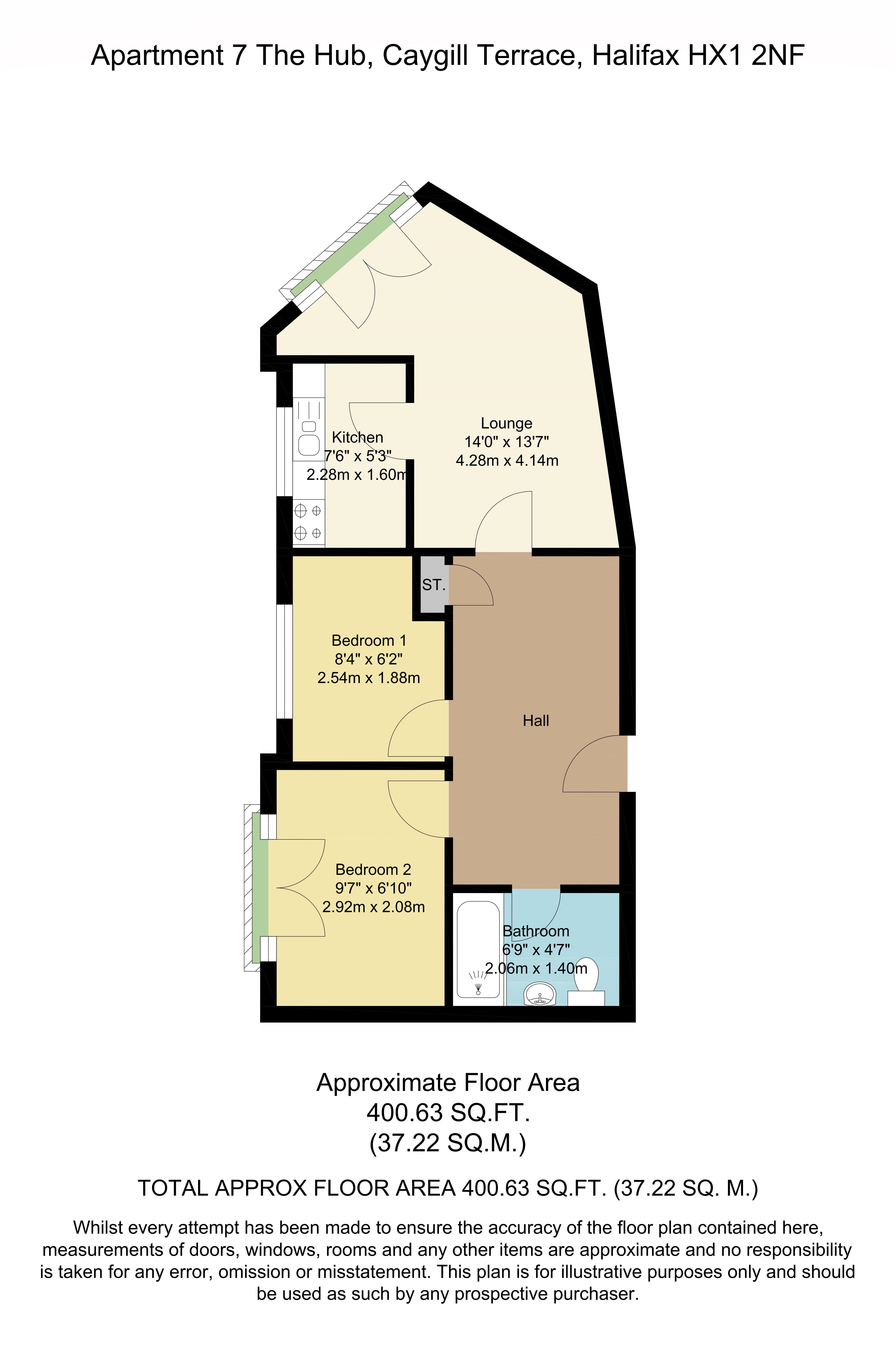 A two bedroom, ground floor apartment in Halifax, currently let producing £550 per calendar month.